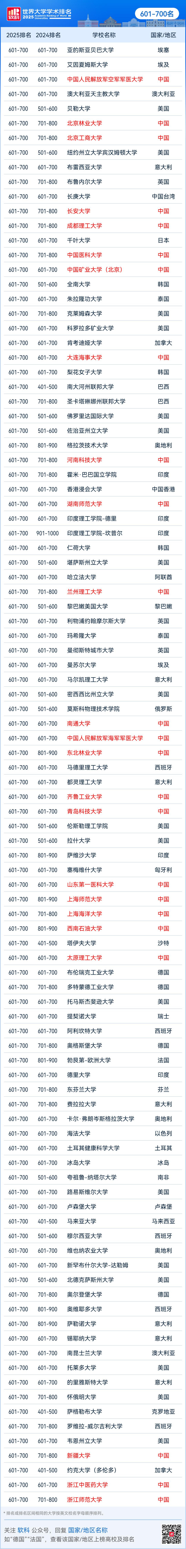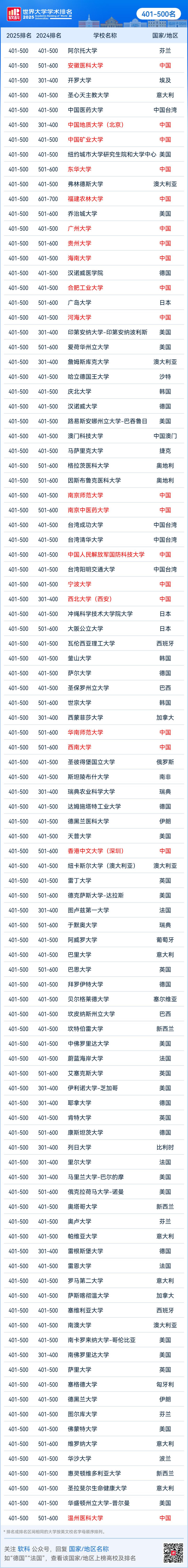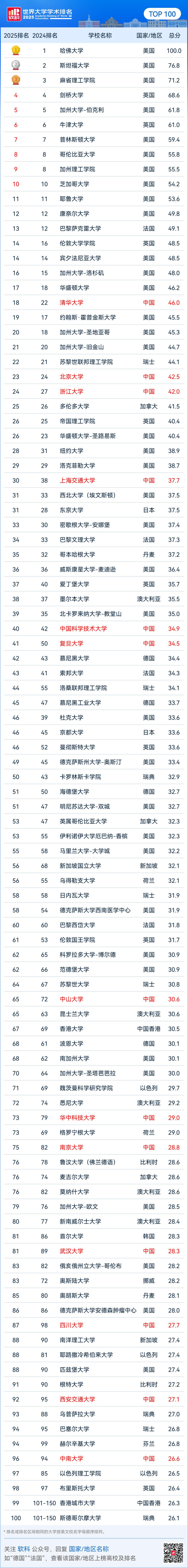2025软科世界大学学术排名完整名单