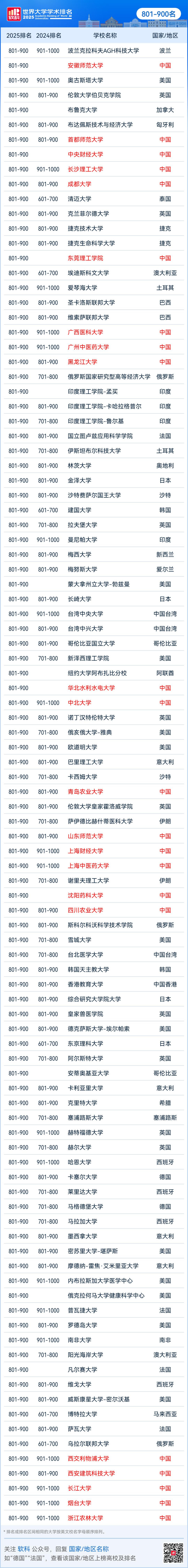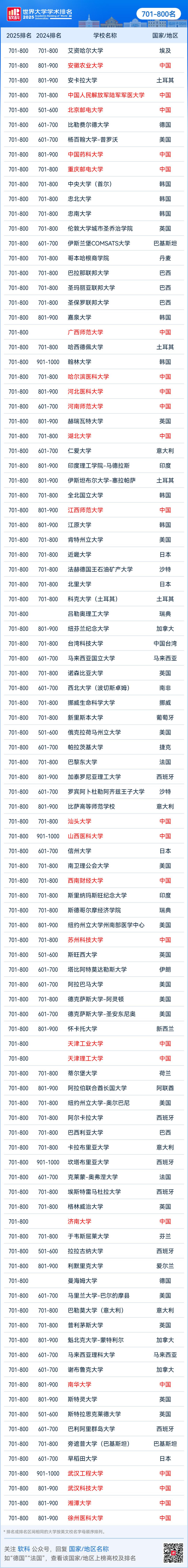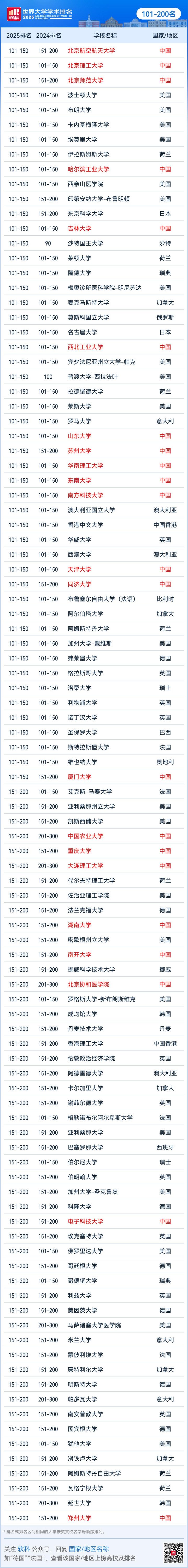 2025软科世界大学学术排名完整名单